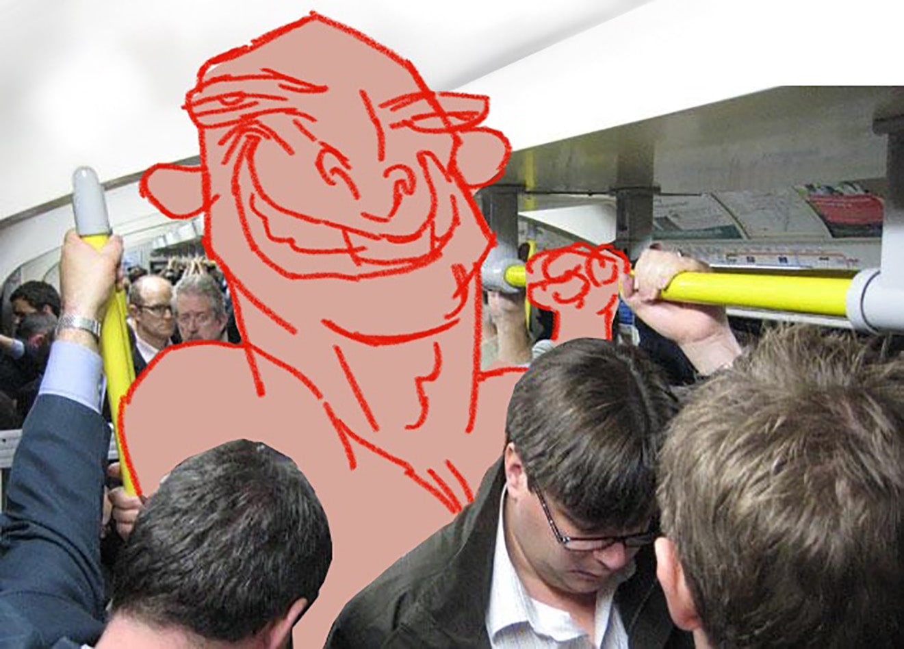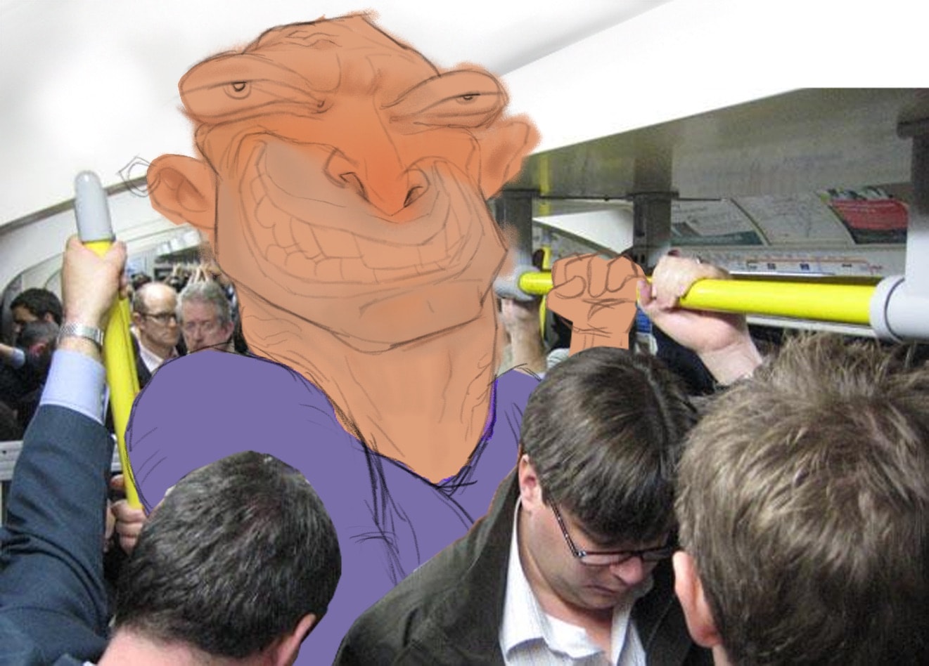 Using a subway photo for the setting, I roughly sketched out the character. More detail and some local color was added. Because of the lighting in the photo, I kept the shading fairly flat.